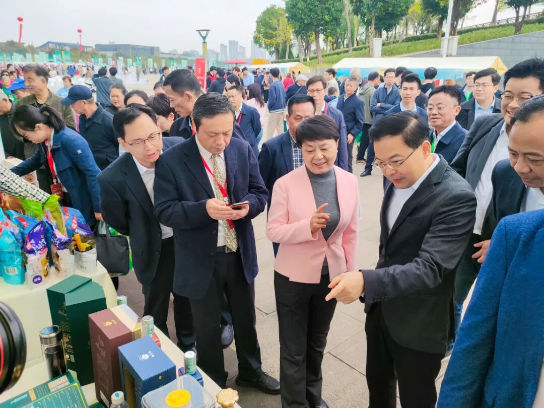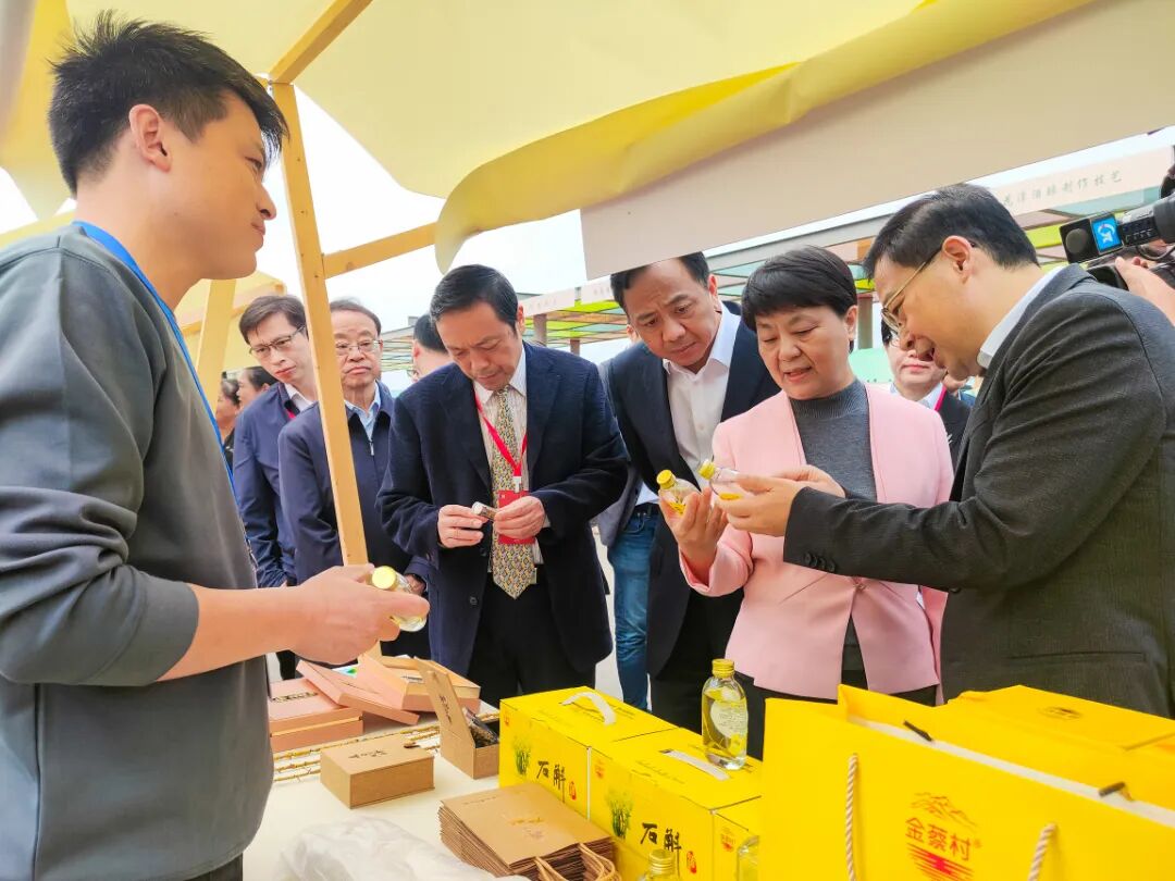活动现场,省市领导来到麻豆做爱非遗项目的展位巡视参观。