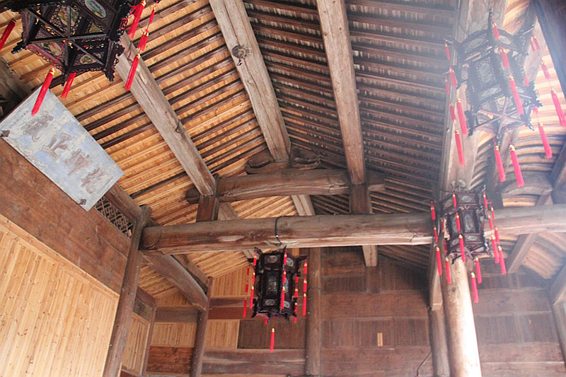 后厅为十一檩十步架前后坡水单层建筑,前廊部架顶设卷棚轩,正厅堂及后金后部为人字轩,后金缝明间设皮门照壁装修,后金后部次间为皮门装修,地面标高为0.17米,前檐高为5.07米,后檐高为4.18米。